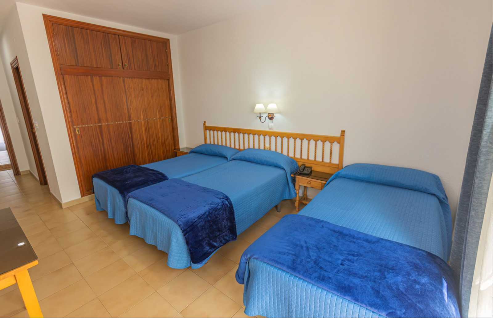 En el Hotel Tres Jotas, creemos que un buen descanso es la base de unas vacaciones inolvidables. Por eso, nuestras estancias destacan por su amplitud y luz natural, distribuidas cuidadosamente para ofrecer la máxima comodidad tanto a parejas como a familias.