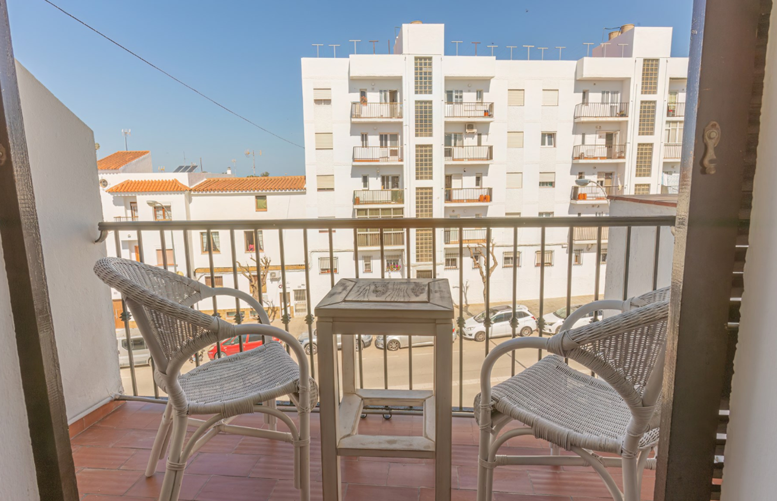 Disfruta de la brisa de Conil en nuestras habitaciones con terraza exterior, o relájate en nuestras estancias con balcón, todas equipadas con tecnología actual y climatización completa para que tu única preocupación sea disfrutar.